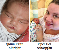 Jon and Shannon (Garland) ’99 Schoepflin welcomed their second child, Piper Dee, on September 23. She was born at 33.5 weeks and weighed 3 pounds, 9 ounces.