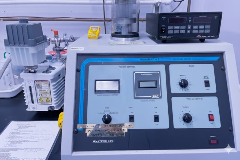 The Electron Optics Facility (EOF) includes three scanning electron microscopes (SEM), an aberration-corrected atomic resolution scanning transmission electron microscope (STEM), and a focused ion beam (FIB) milling system.