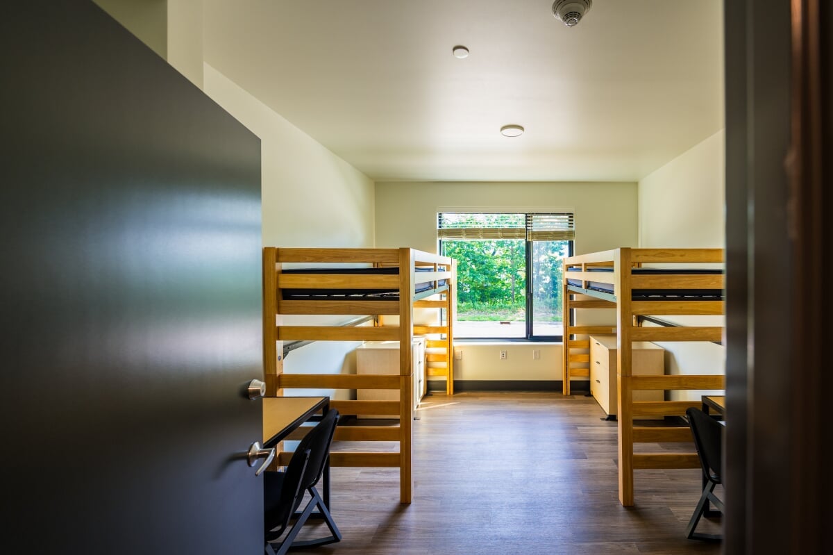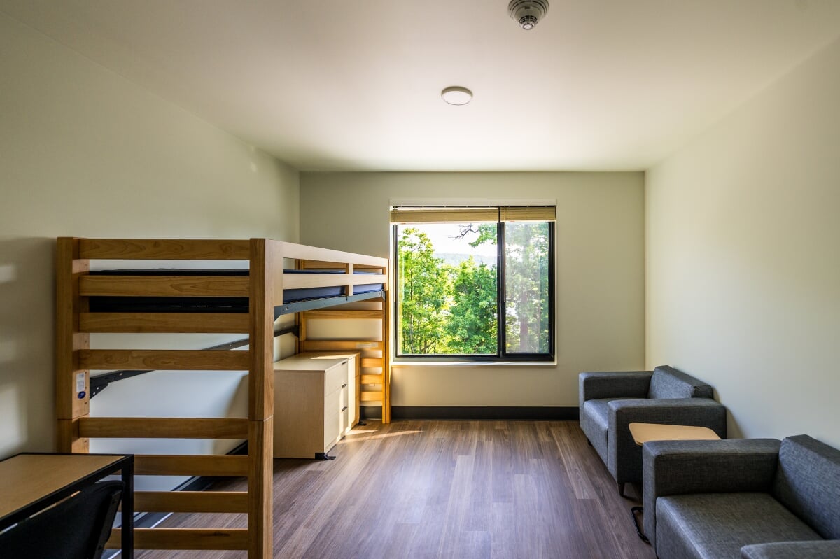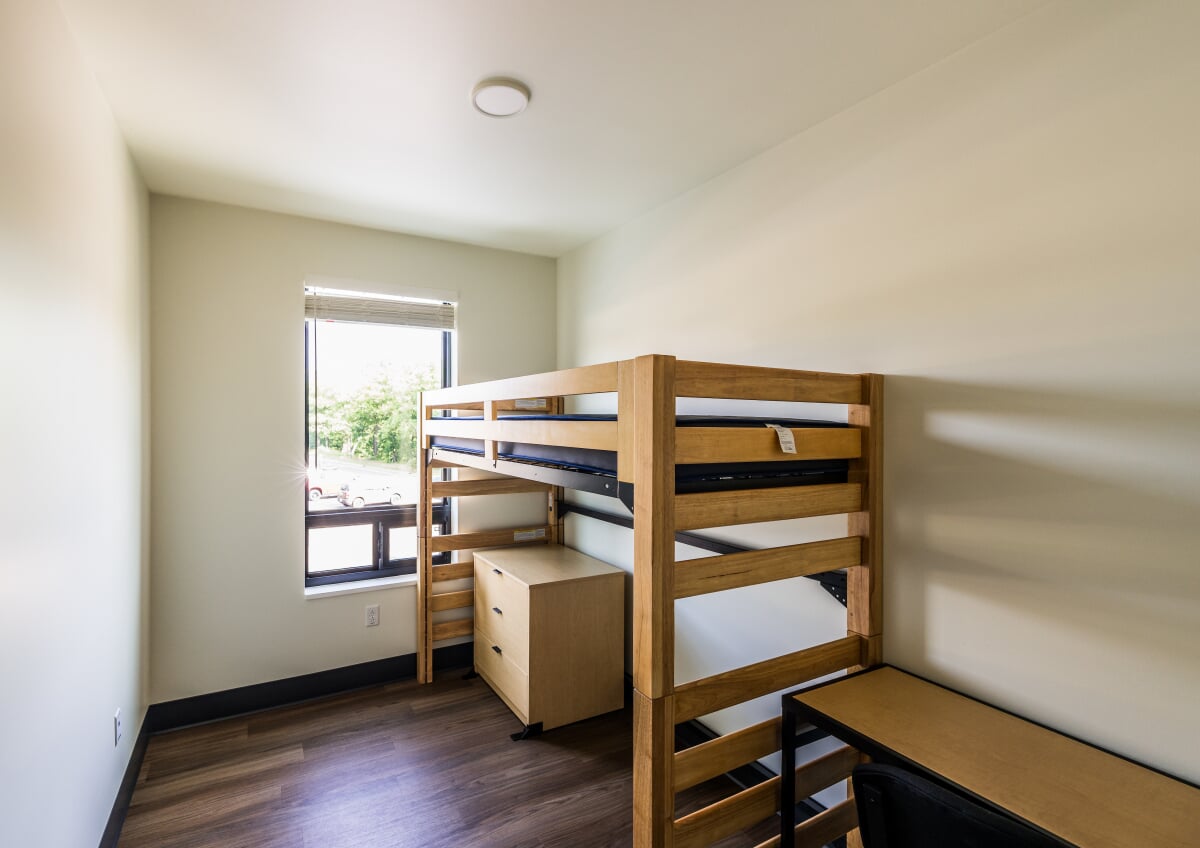 - Each room equipped with desk chair, writing desk, dresser, and loftable bed (optional to loft) per student in the room