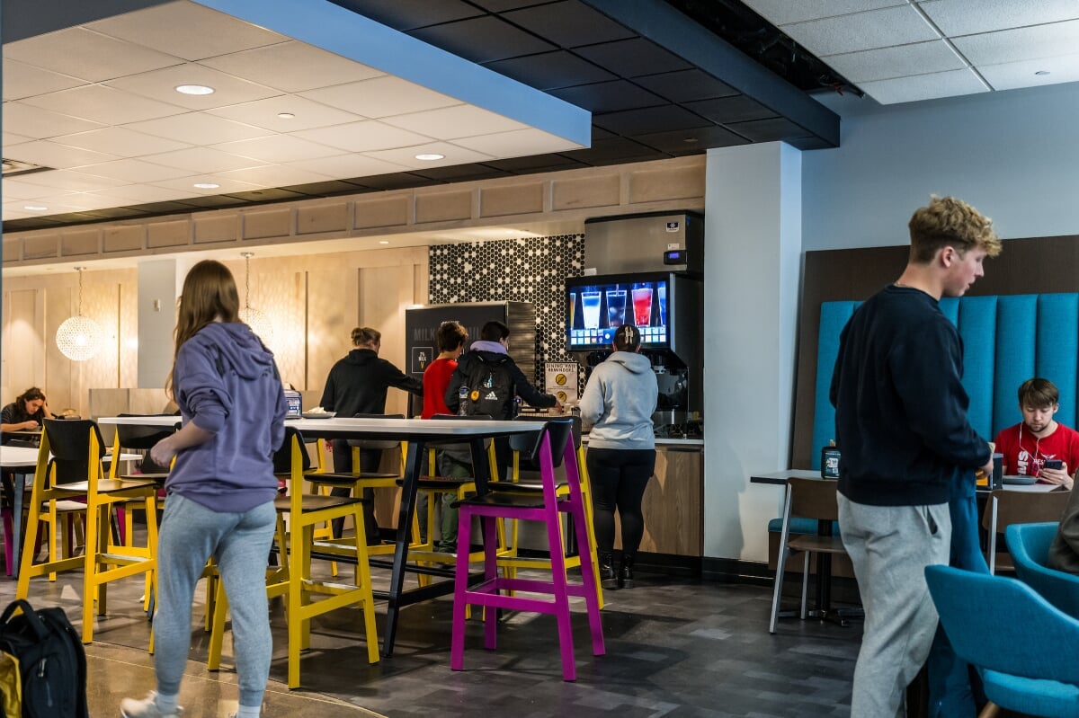 Wadsworth Hall (Wads) is the largest hall on campus at one-quarter-mile long and five stories high with approximately 1,050 beds available for assignment. It offers traditional and suite-style double-occupancy rooms and contains several themed communities. With study and social lounges on each floor, there are plenty of opportunities to build relationships and focus on coursework. Wads contains many unique spaces, including the Campus Café, an Engineering Fundamentals classroom, and the campus radio station. Multi-use rooms on the ground floor provide additional study and social spaces for students to enjoy.