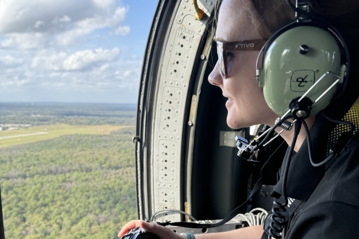 Through her work with the BASH program, Baker now travels to Air National Guard bases across the country where she reviews and rewrites wildlife management plans, conducts ground and aerial tours—often in Black Hawk helicopters or the occasional C-130—and provides training for both biologists and military personnel. While birds are always the biggest concern, Baker says every location presents a unique challenge.