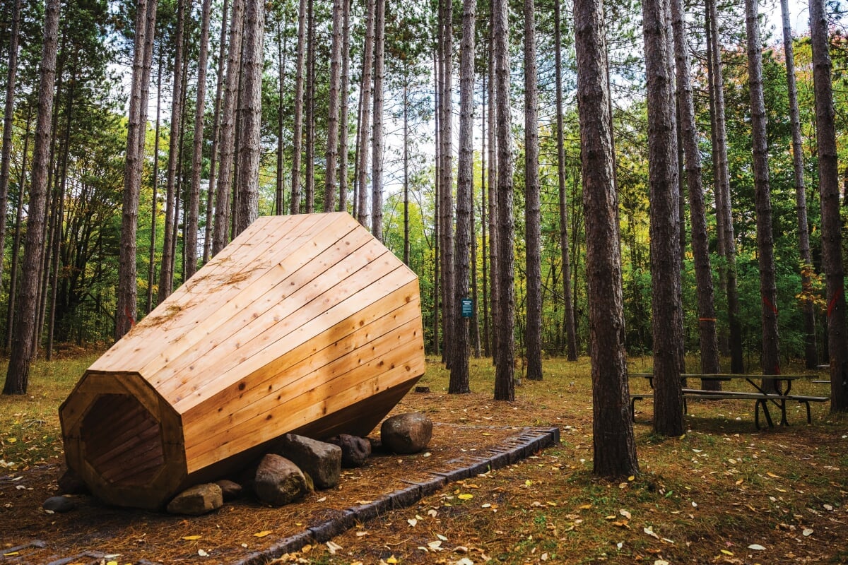 Imagine being immersed in a cornucopia of quiet forest sound—small animals rustling in the underbrush, birds chirping softly, wind gently shifting the leaves. This is what visitors to Michigan Technological University's Tech Trails can experience inside the recently installed nature megaphone.