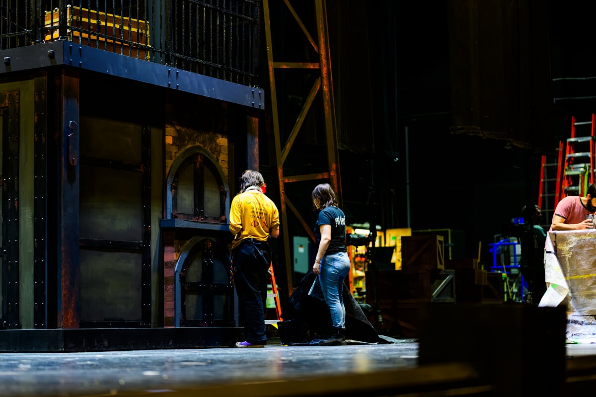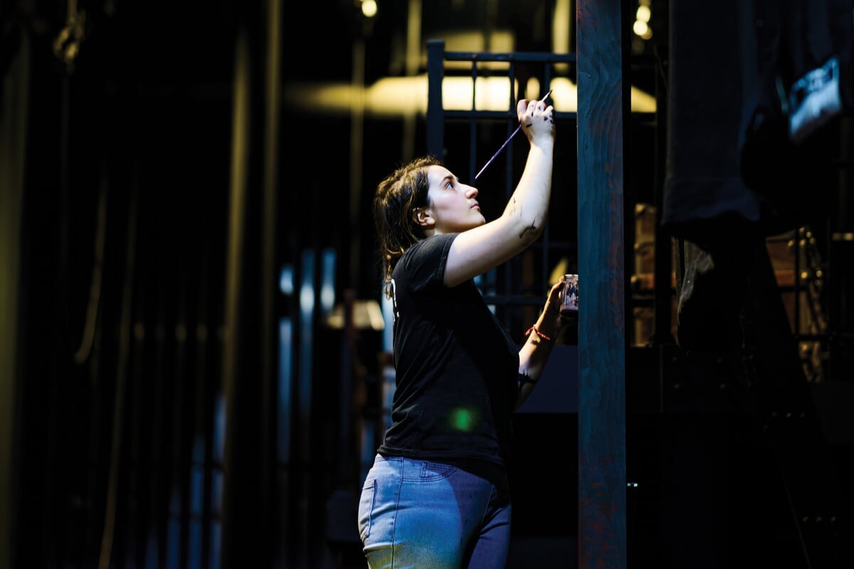 Moving like shadows in their all-black clothing, theatre technicians—also called techs and stagehands—are the unsung heroes of any live production. If you've never been in a production yourself, you might not even be aware that these mysterious figures exist. In fact, that's the point, says Nikki Donley '26, theatre and entertainment technology major and co-technical director for Tech's 2025 production of Sweeney Todd: The Demon Barber of Fleet Street.