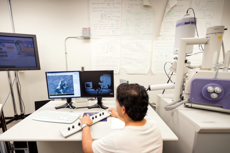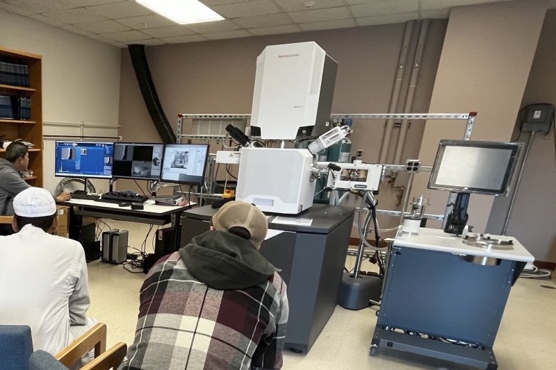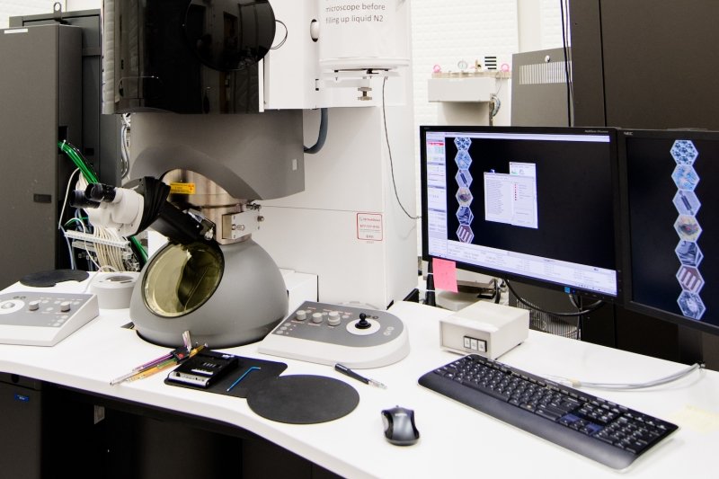 The Electron Optics Facility (EOF) includes three scanning electron microscopes (SEM), an aberration-corrected atomic resolution scanning transmission electron microscope (STEM), and a focused ion beam (FIB) milling system.