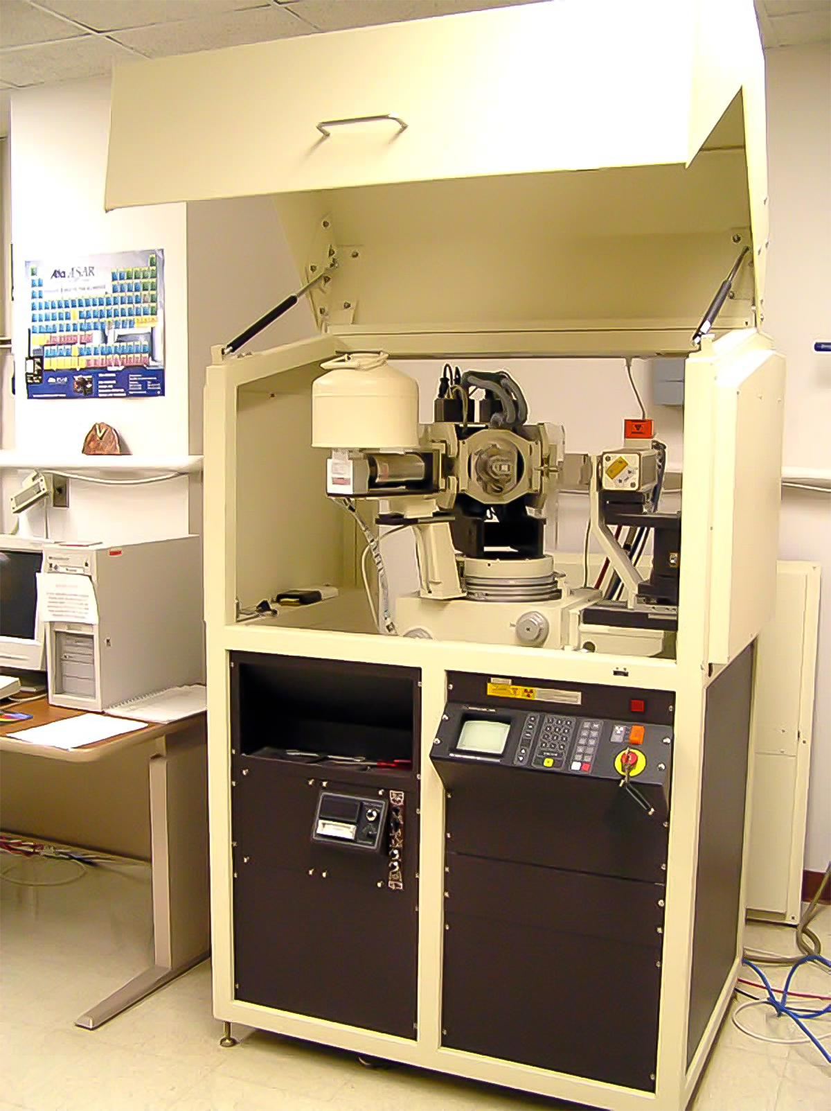 The Scintag XDS2000 a 3-axis Pole figure, Texture, and Stress (PTS) horizontal goniometer configured with an LN2 cooled germanium semiconductor detector and IBM compatible workstation running Scintag XDS software in Windows NT environment.