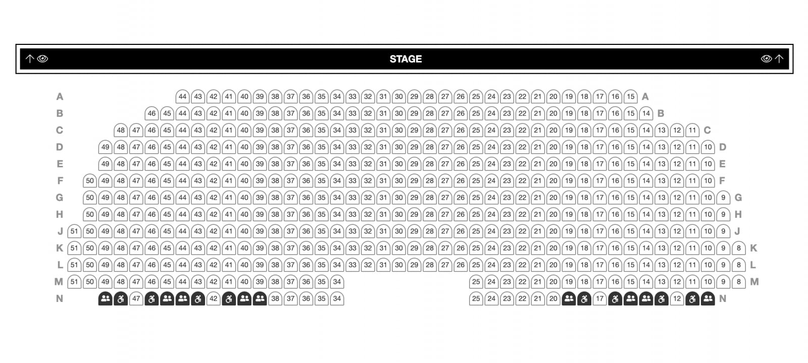 For detailed seat planning, refer to the easy-to-use interactive seating chart online when selecting your seats for a reserved seated show.