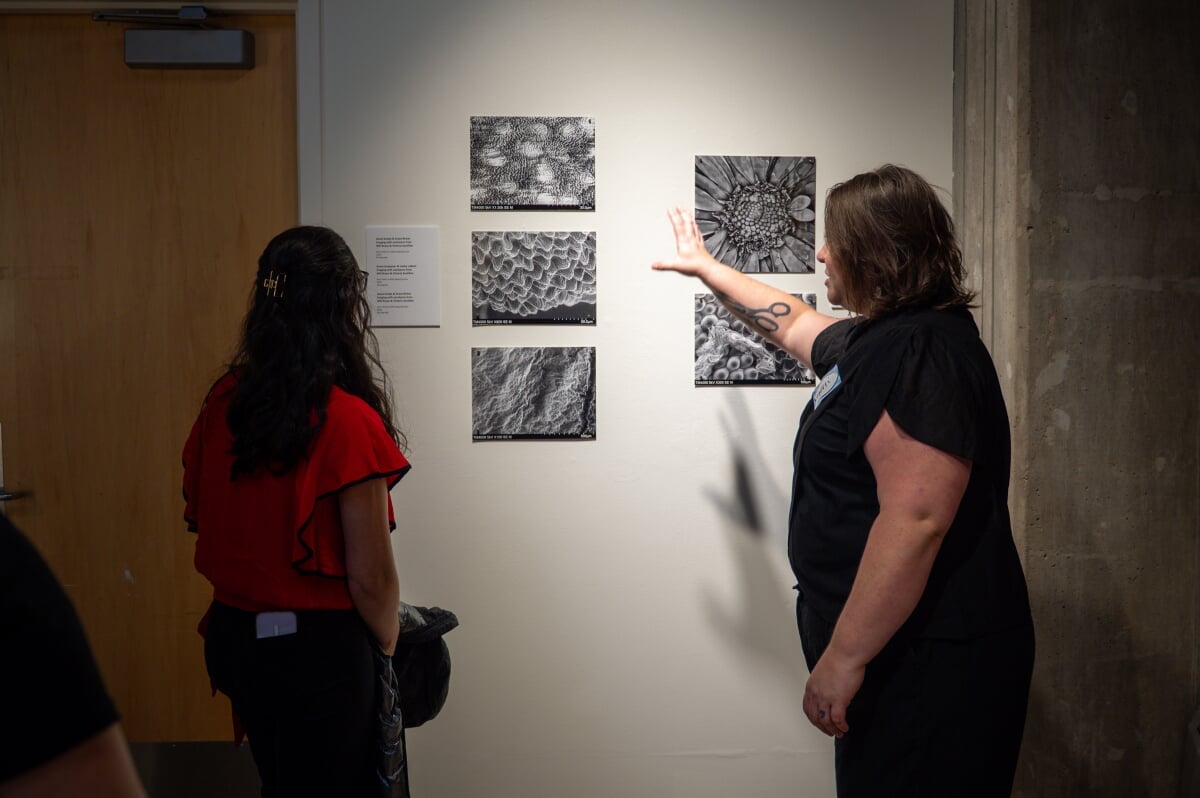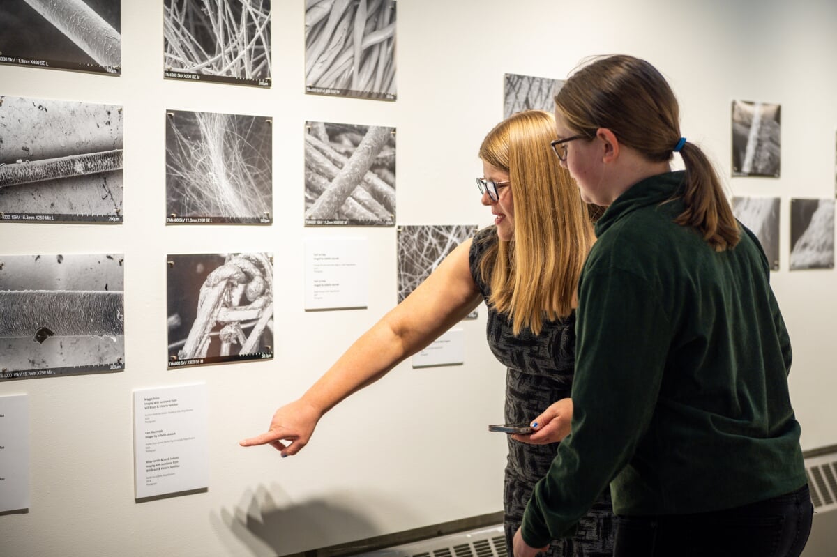 The exhibit and gallery reception were supported by a multidisciplinary Michigan Tech network, including the A. E. Seaman Mineral Museum, the Applied Chemical and Morphological Analysis Laboratory (ACMAL), the College of Sciences and Arts, the Department of Biomedical Engineering, the Department of Materials Science and Engineering, the Department of Visual and Performing Arts and the Rozsa Center.